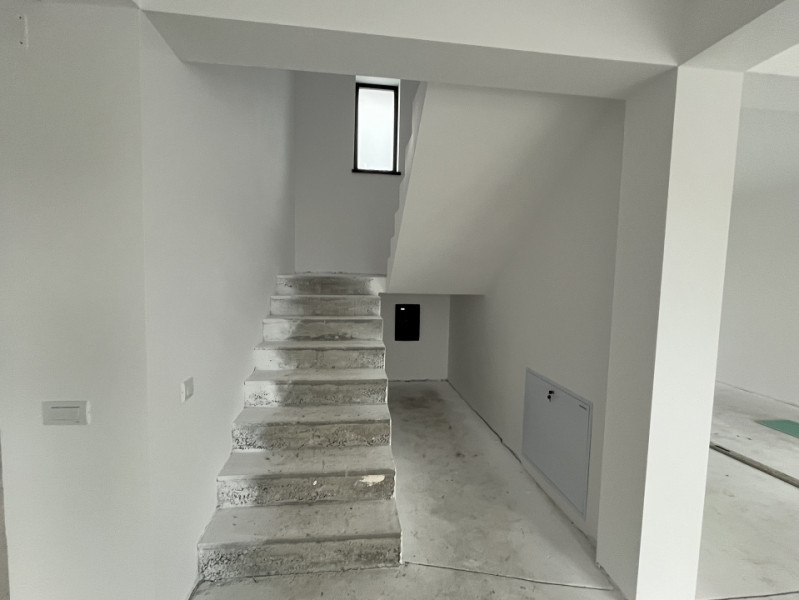 Parterul se deschide cu un living generos și luminos, ideal pentru petrecerea timpului în familie sau cu prietenii, dispune de ieșire către curtea din lateral unde avem o platforma betonata pentru un viitor foisor, creând un spațiu perfect pentru momente de relaxare sau pentru a savura mesele în aer liber, bucataria open space cu acces in viitorul foisor, veți găsi un spatiu de depozitare sub scara precum și un baie spatioasa moderna. Holul de la intrare adaugă un plus de eleganță și spațiu.