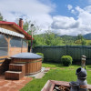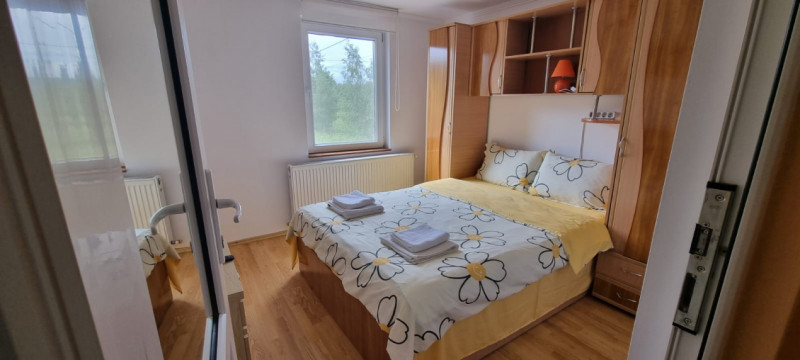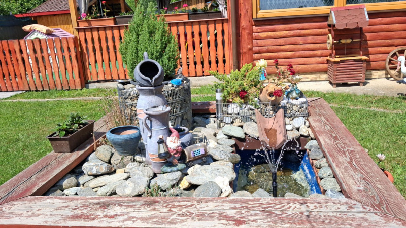 EXTERIOR IMOBIL: Cabanuta din lemn incalzita, cu terasa acoperita, un dormitor cu bucatarie open space si baie proprie, foisor mare cu gratar, plita si chiuveta, afumatoare, cuptor de paine, ciubar pe lemne, balansoar, fantana arteziana, aranjamente florale.